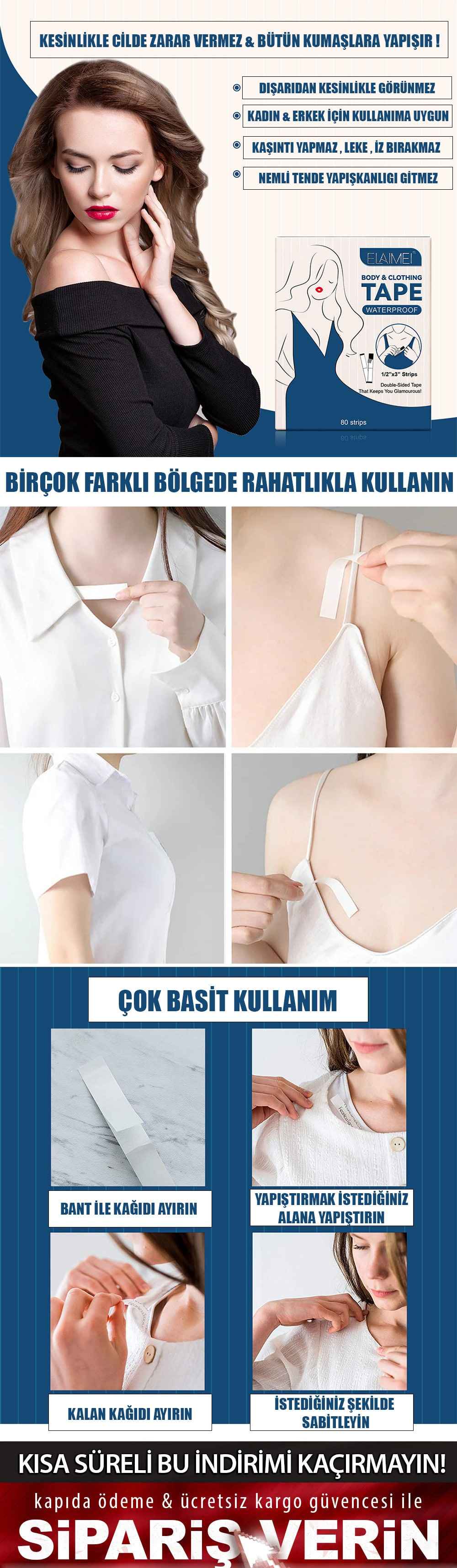 6 PAKET (216 ADET) KIYAFET SABİTLEME BANDI -